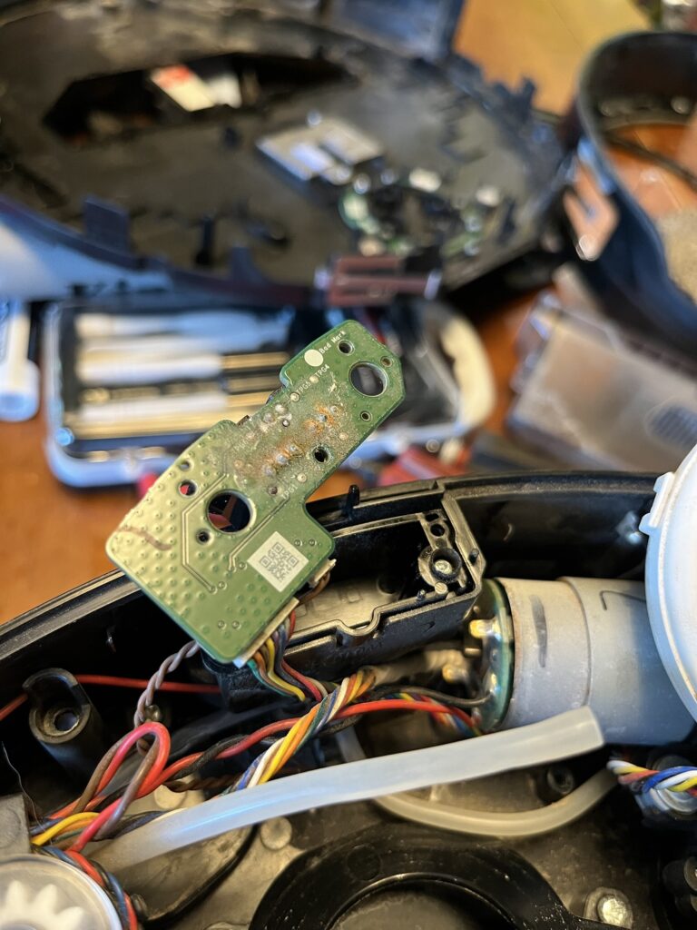 So a few months after this repair I noticed that my side arm brush was no longer turning. So after removing the brush head I found that there was a small piece of yarn that was stuck on the brush head. This + the side arm not moving = dead brush motor.